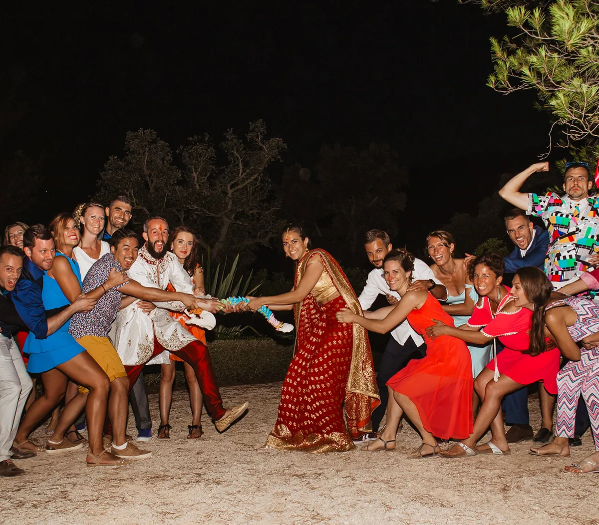 Cette photo, c'est notre mariage. D'un côté nos amis chiropracteurs, de l'autre nos amis ostéopathes. Chaque groupe tire la colonne vers lui… sauf que nous, on a décidé de tout réunir sous le même toit.